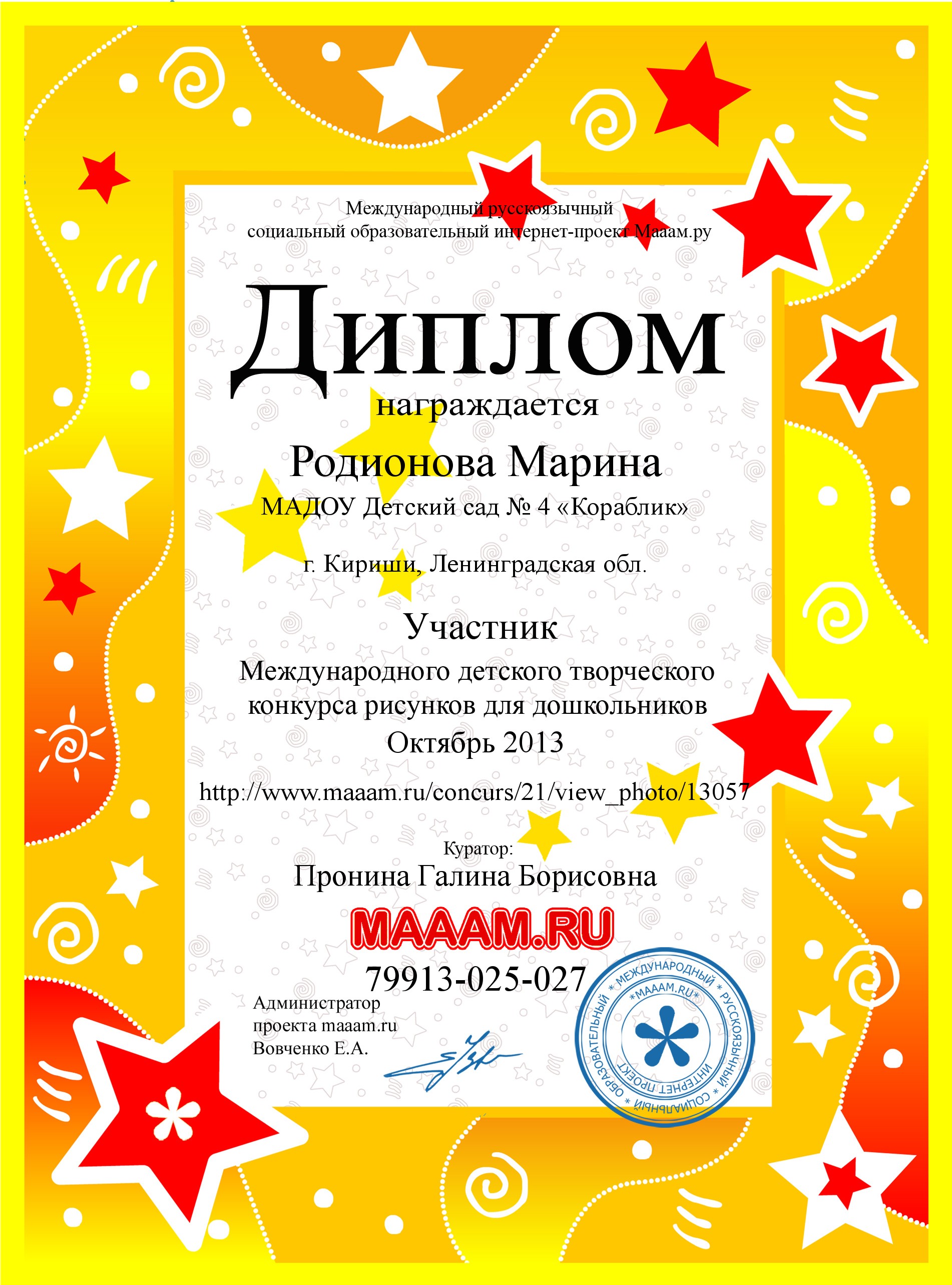 диплом участника конкурса